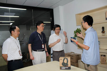 佳禾声学正在与工研院合作孵化穿戴设备相关产业。丁烈云参观了产品展示厅以及实验室,听取技术人员对该公司头戴耳机、入耳式耳机、高保真耳机和无线蓝牙耳机等产品的介绍,并亲自试戴耳机感受产品的舒适性和功能。丁烈云鼓励企业尽快利用工研院和松湖华科的资源和服务优势推动上市。