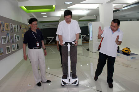 在易步公司,丁烈云询问了该公司的技术研发和生产、产品性能等情况,并亲自试驾了易步M2代步机器人。他表示,这种代步车曾在武汉、北京等地的机场见到过,可以在机场、展会等大型场馆推广。
